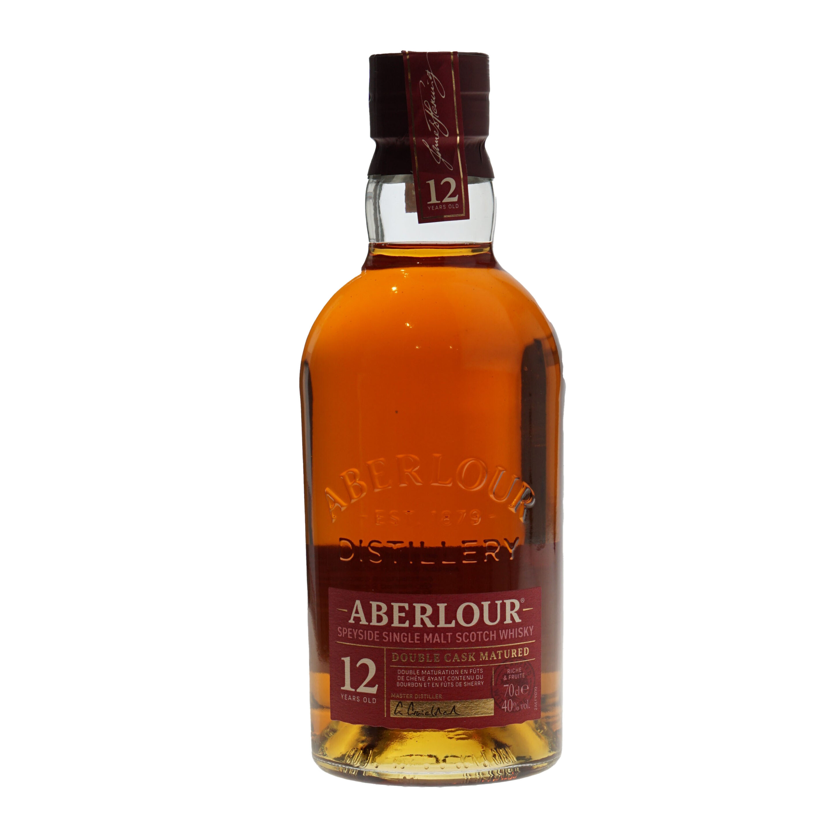 Aberlour Whisky Double Cask 12 Years Matured is een whisky waarbij de sherry duidelijk te herkennen is met daarbij tonen van fruit en chocolade, toffee, gember en kaneel.
