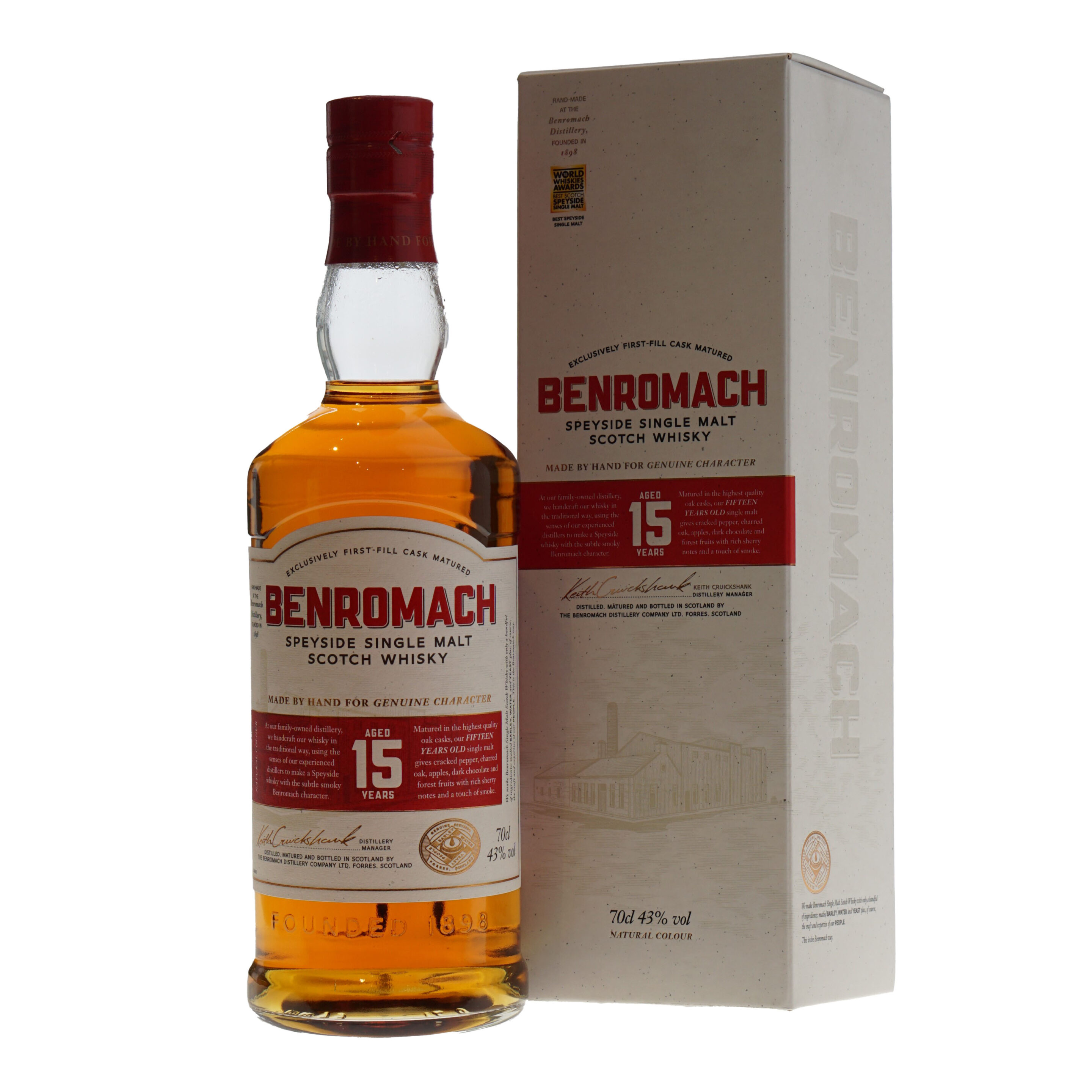 Benromach Whisky 15 Years een release uit 2015 voor de briljante Benromach-reeks. Deze whisky is gerijpt in een selectie van bourbon- en sherryvaten, wat resulteert in een intens maar uitgebalanceerd smaak. Er zijn kruiden (denk aan gember, munt en een beetje kaneel), er is sappig fruit (pruimen en clementine), en er is een vleugje rokerig verkoold eikenhout. Allemaal goed geplaatst en in harmonie met elkaar.