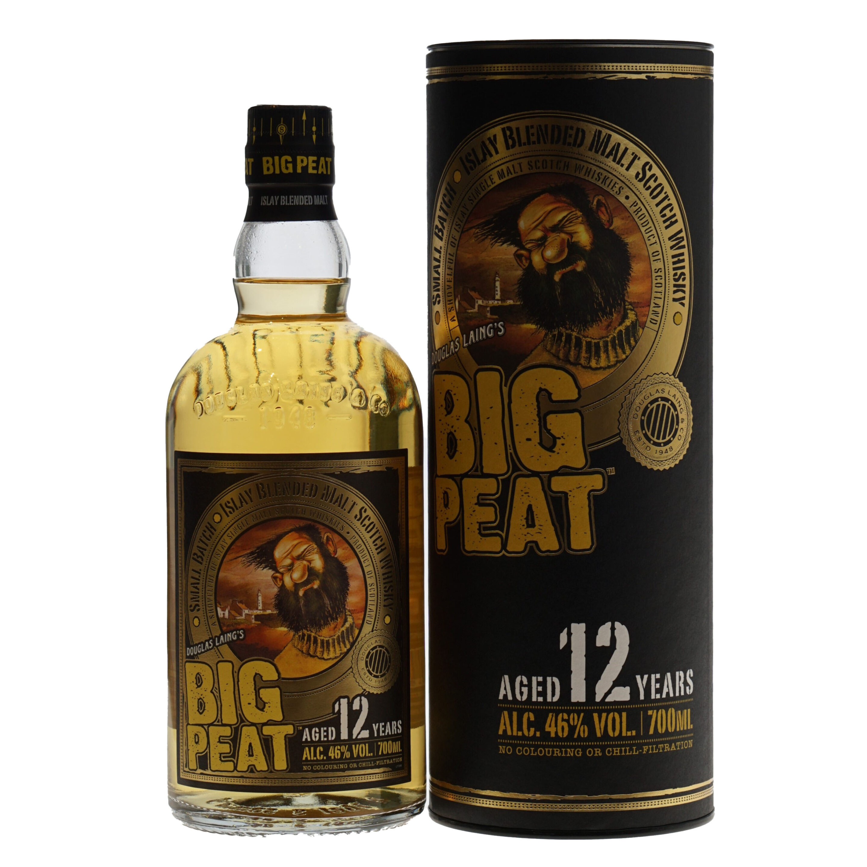 Big Peat Whisky 12 Years, een frisse ziltige whisky met de aanhoudende smaken van rook en turf,