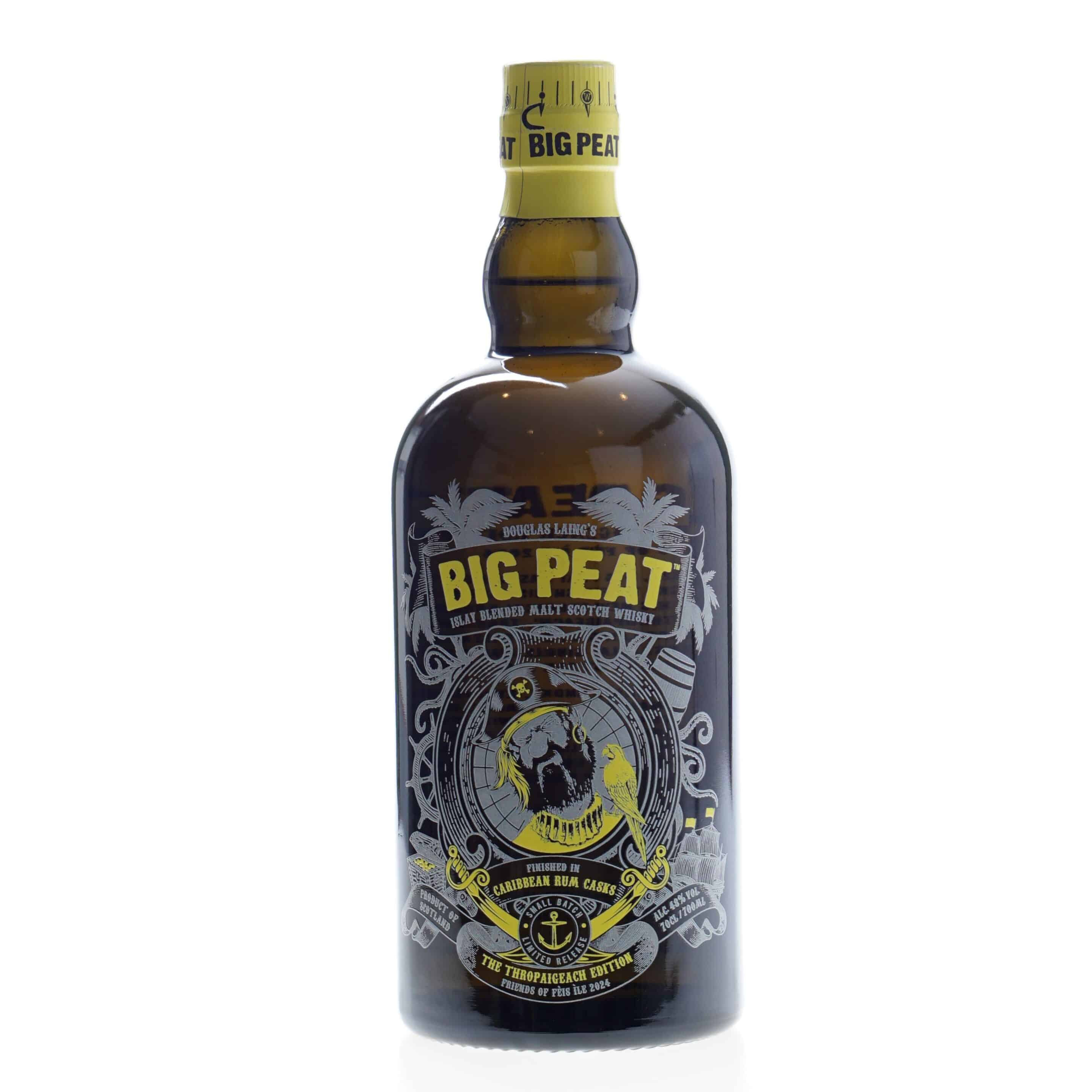 Big Peat Whisky The Thropaigeach Feis Ile 2024, De jaarlijkse terugkerende Big Peat Fèis Ìle limited edition komt opnieuw met een grandioze versie. Onze geturfde vriend is dit jaar omgetoverd tot ware tropische piraat.