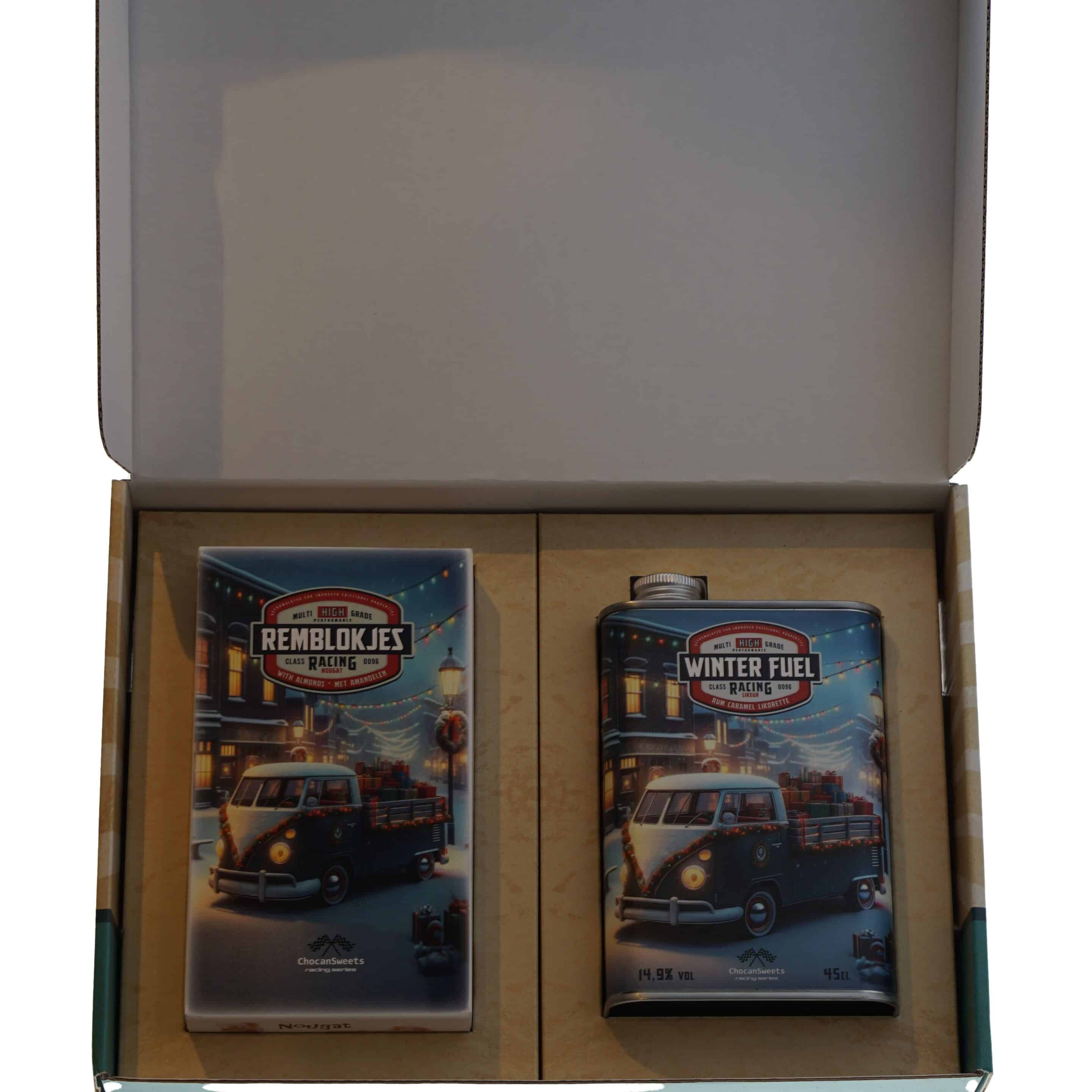 Chocan Sweets Geschenkdoos Winterfuel Blik 45cl en Nougat Remblokjes.