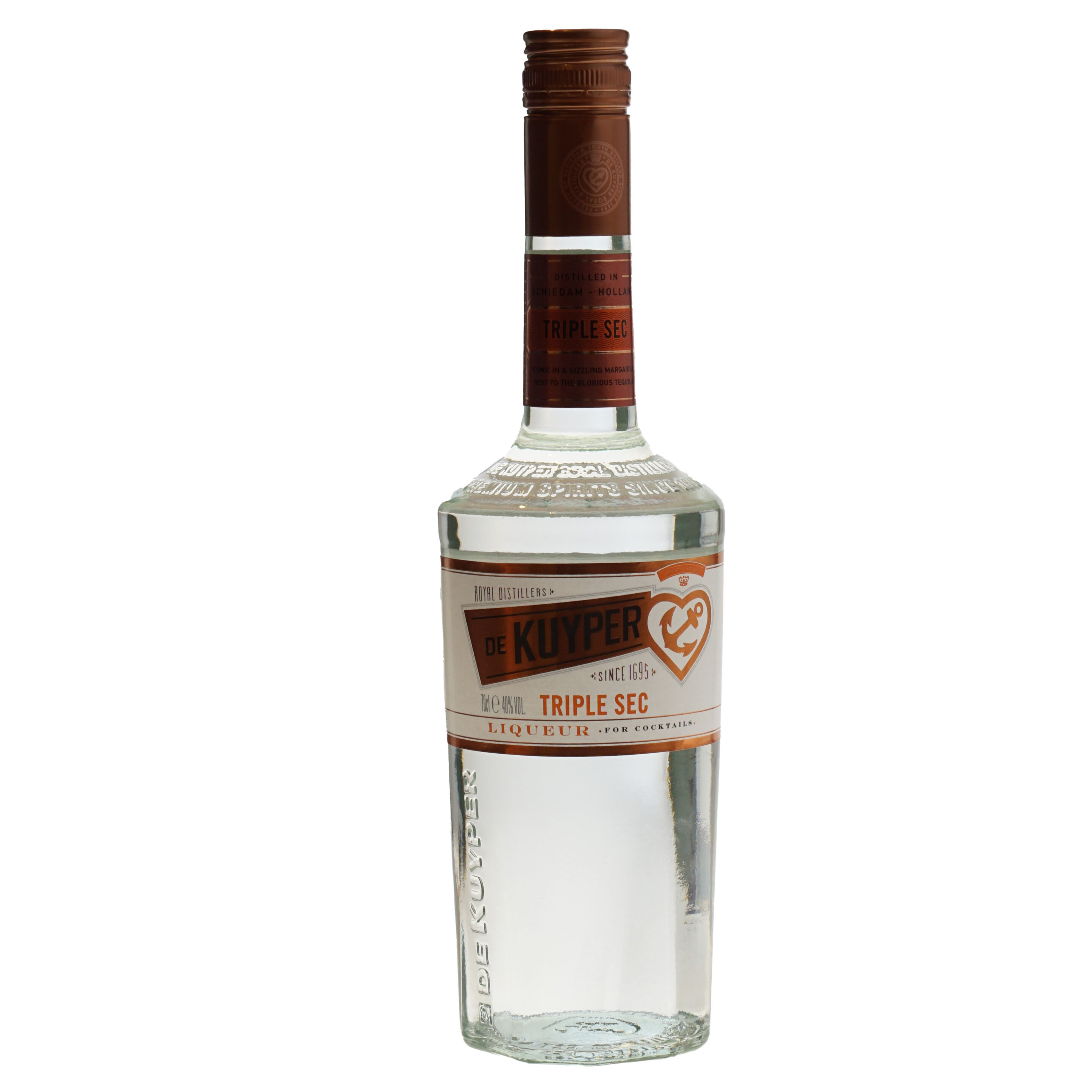De Kuyper Triple Sec likeur kenmerkt zich door stevige sinaasappelsmaken als resultaat van het distilleren van sinaasappels en Laraha fruit.
