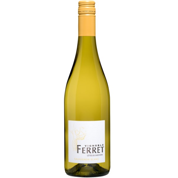 Ferret IGP Gascogne Sauvignon, stuivend, met de typische geur van de Sauvignon, zoals buxus en kruisbessen.