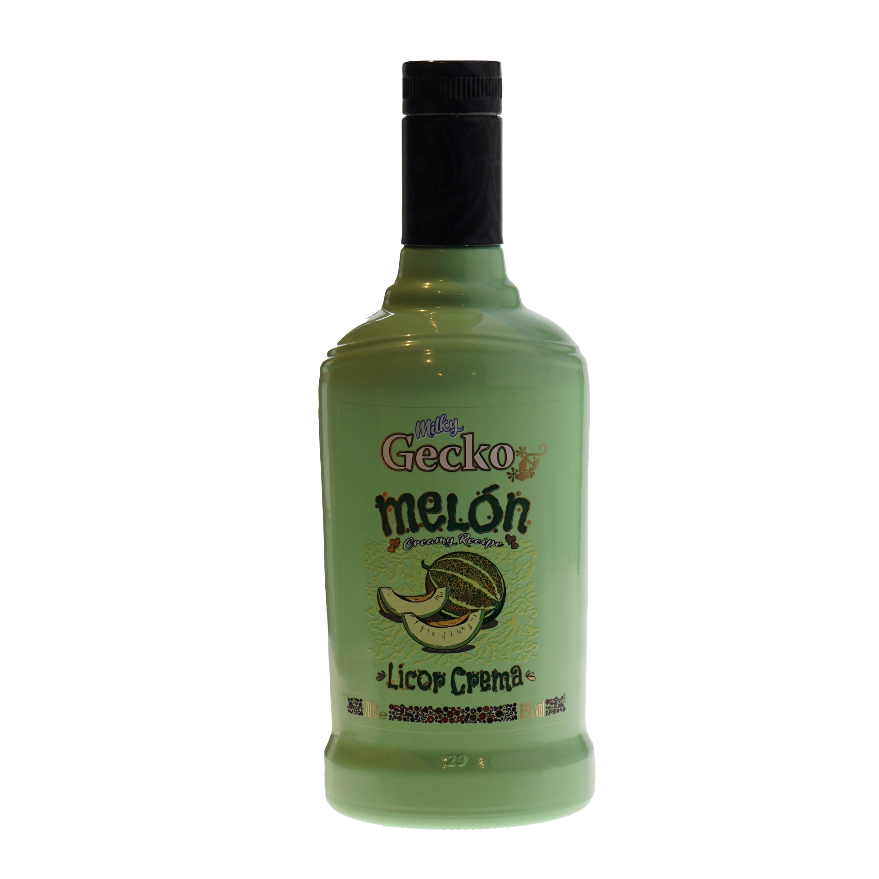 Gecko Milky Melón Licor Crema. De kleur is intens groen en creamy. Het aroma is fris en fruitig, met tonen van meloen en vanille.