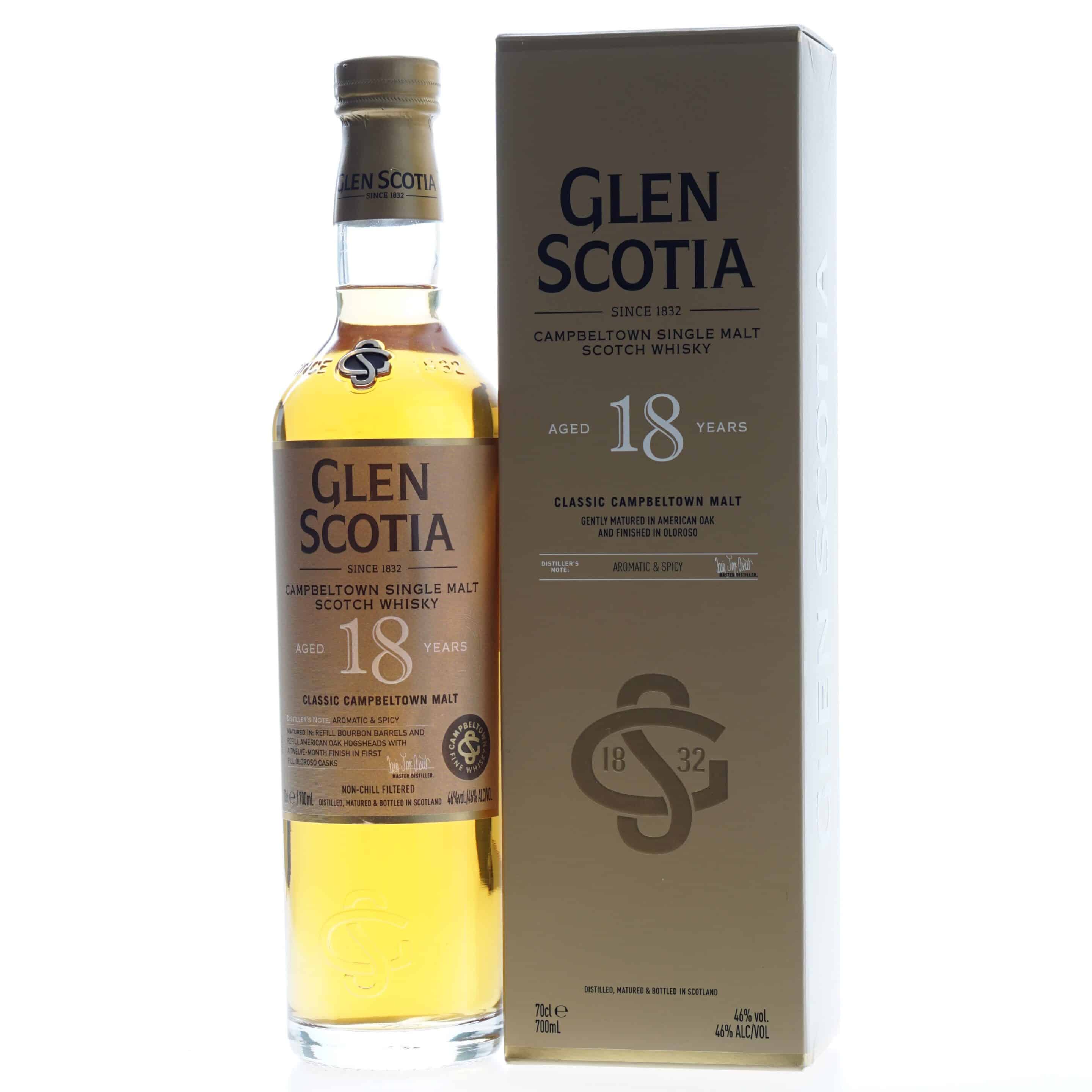 Glen Scotia Whisky 18 Years, een complexe en volle smaak, met tonen van vanille, karamel, fruit en kruiden.