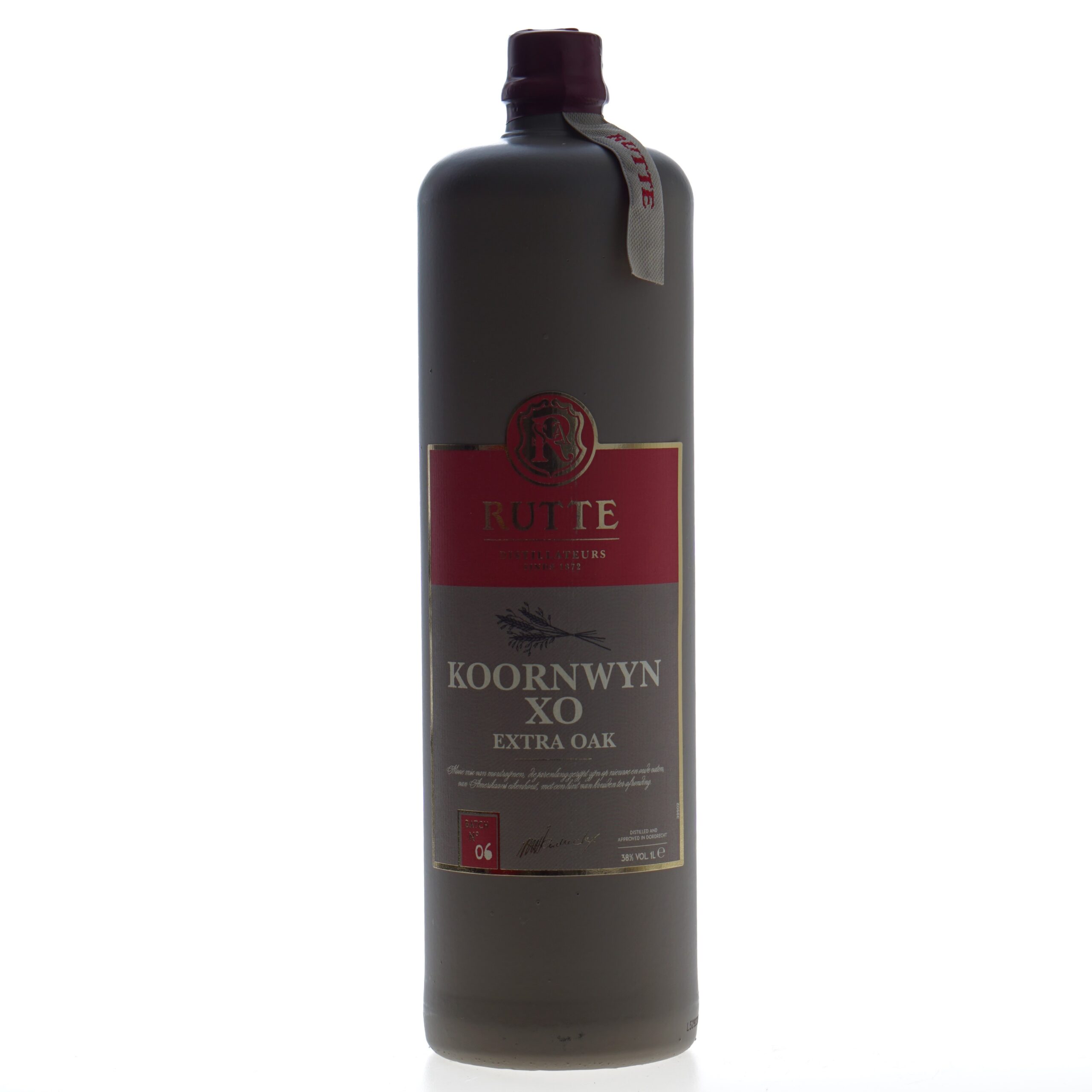 Rutte Koornwyn XO, Mooie mix van moutwijnen, met een hint van kruiden ter afronding. Voor deze Koornwyn is een speciale blend gemaakt van moutwijnen van verschillende leeftijden, gerijpt op nieuwe en oude eikenhouten vaten. De XO is intens, smaakvol en met een lange afdronk van gedroogd fruit, abrikoos en vanille.
