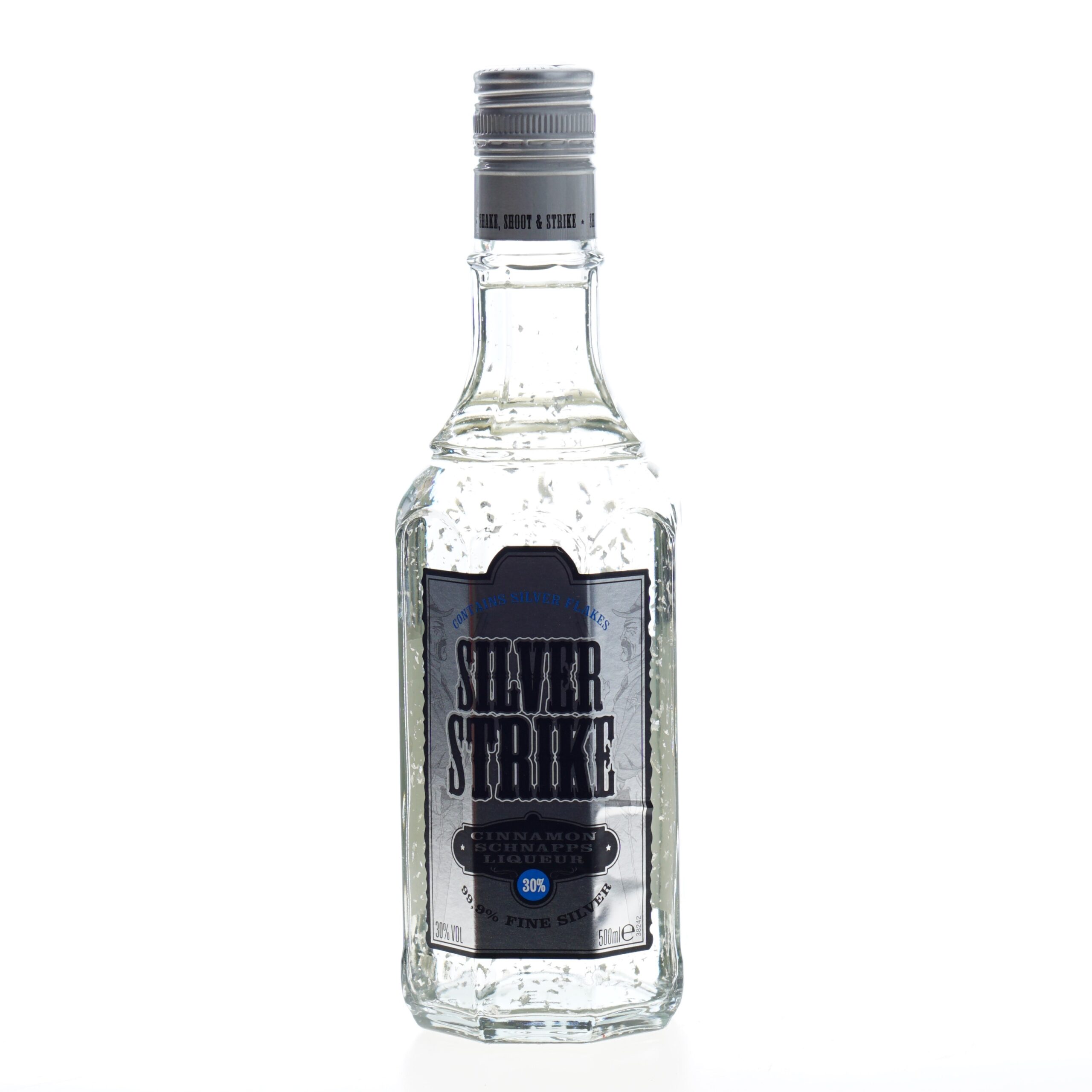 Silverstrike Likeur familie van Gold Strike, de succes likeur met kaneelsmaak en vlokken bladgoud (23,5 karaats).