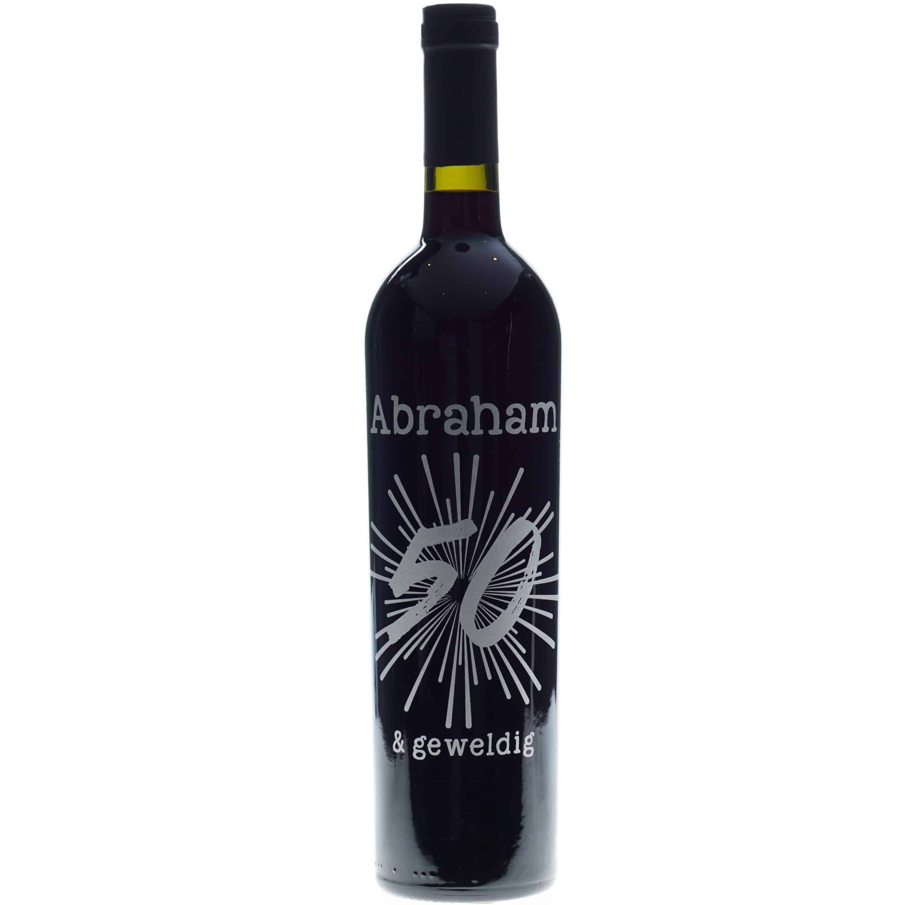 Deze Wens Wijn Abraham is bedrukt met de tekst: Abraham & geweldig