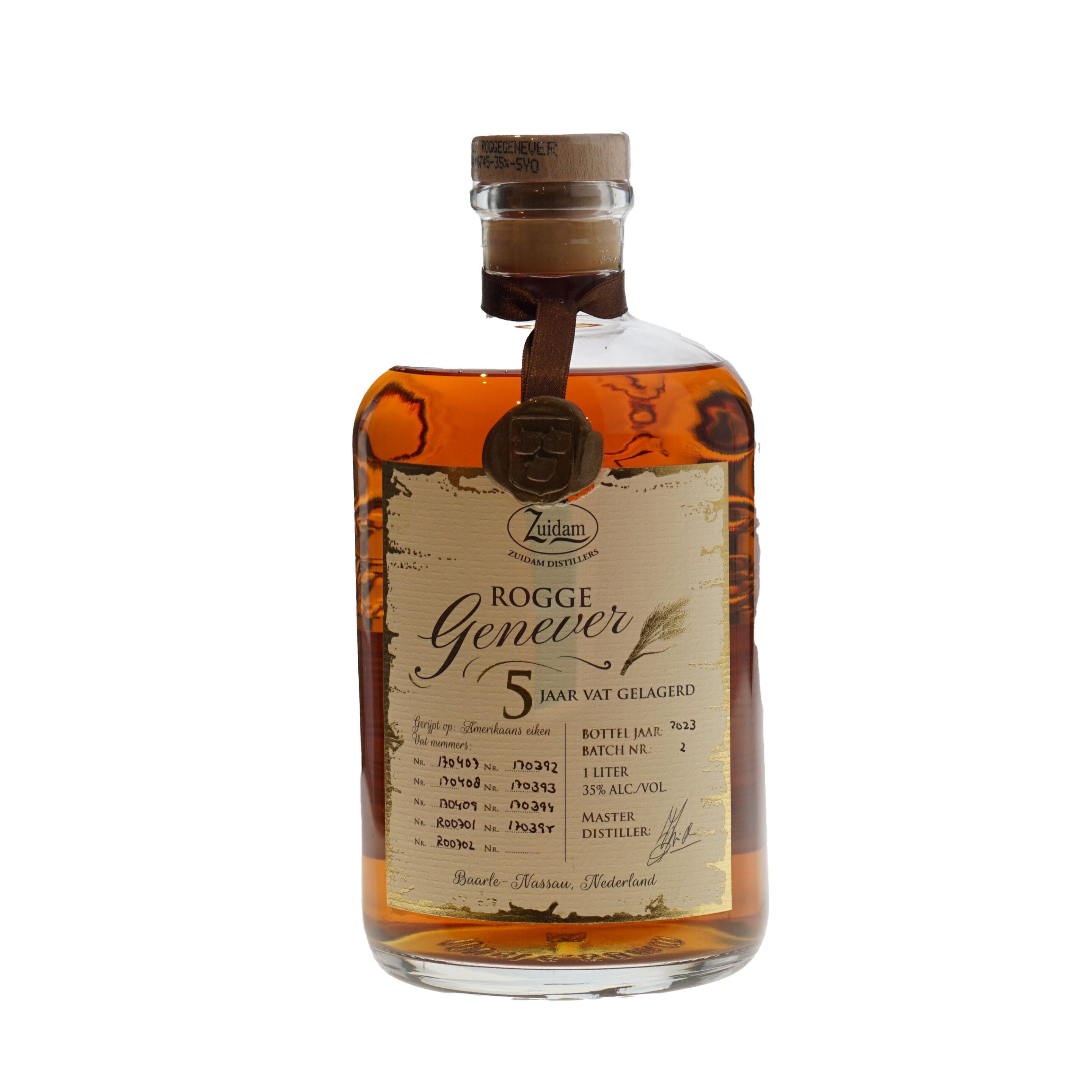 Zuidam Rogge Jenever 5 Jaar Vat Gelagerd rijpt 5 jaar op nieuwe vaten van Amerikaans eiken. Kruidige invloeden zijn rijkelijk aanwezig en komen tot leven in je glas. Tonen van zoetigheden, fruit en vanille tegen evenals een toets van eikenhout.