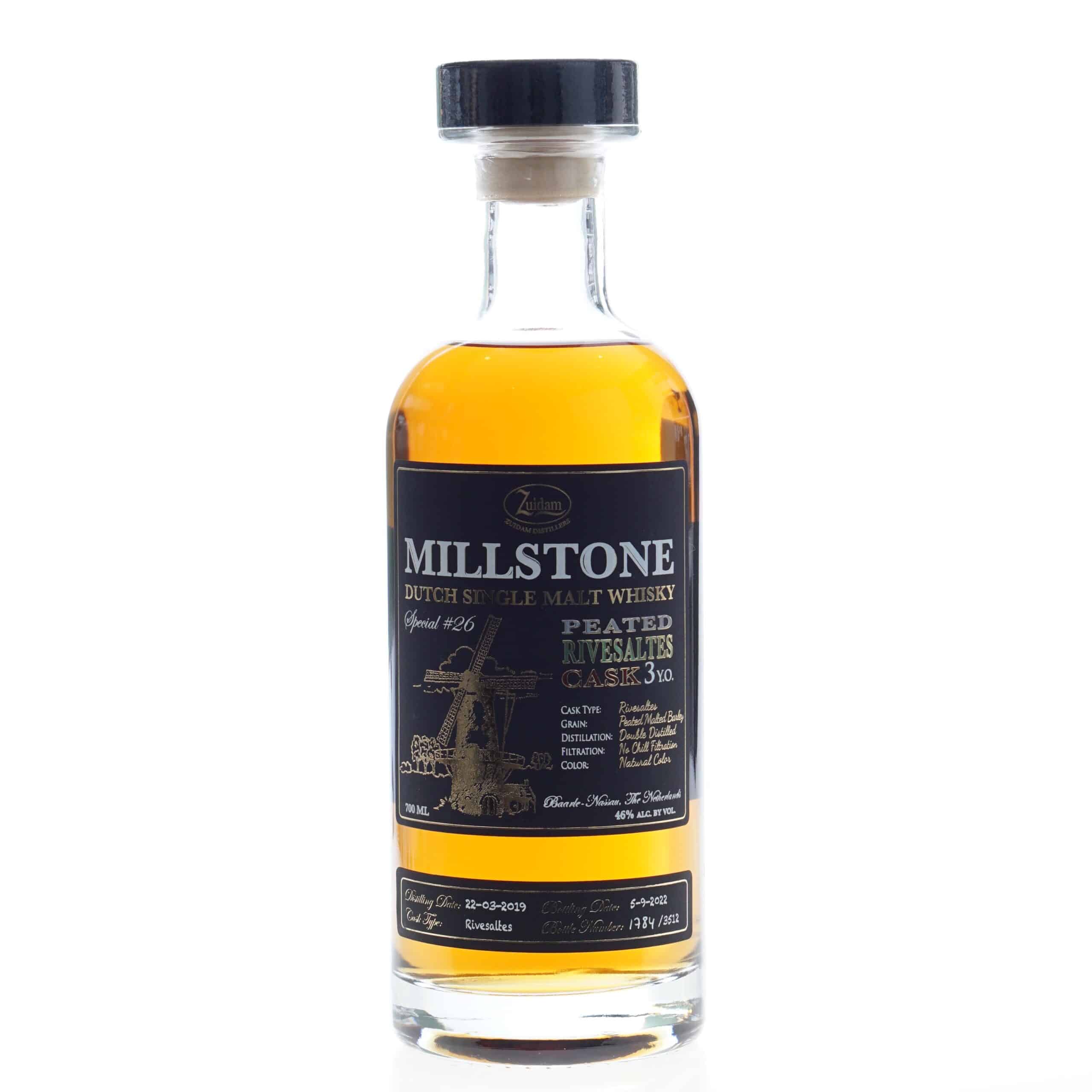 Zuidam Whisky Millstone Special 26 Peated Rivesaltes Cask 3 Years heeft de prachtige kleur van oud goud en een rijk en weelderig smaakprofiel.